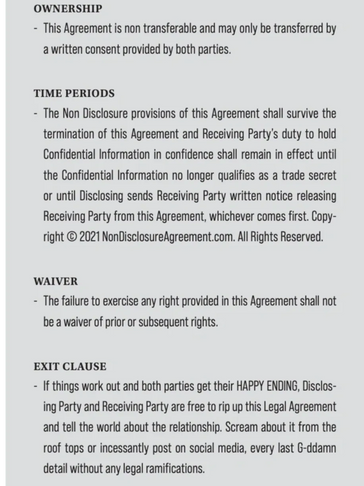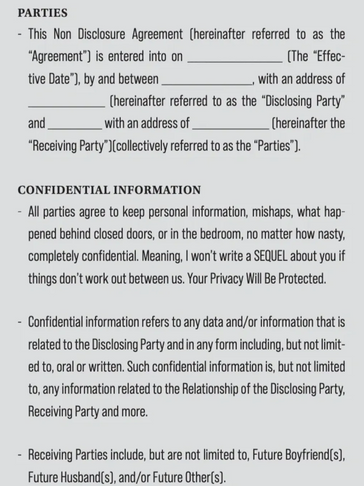If you've already read my book then you now know how important an NDA is. So for all you single gals (and guys) out there, get one and make sure to sign it.